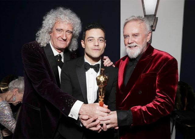 Brian May, Rami Malek and Roger TaylorLater in the press room, Malek took another moment to reflect on the win and to consider how far he’s come.