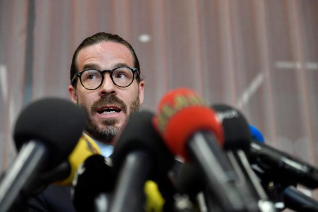 Counsellor Slobodan Jovicic speaks in a news conference about the prosecutor’s decision to bring charges of abuse against artist ASAP Rocky in Stockholm, Sweden, July 25, 2019. Fredrik Persson / TT News Agency / via REUTERS