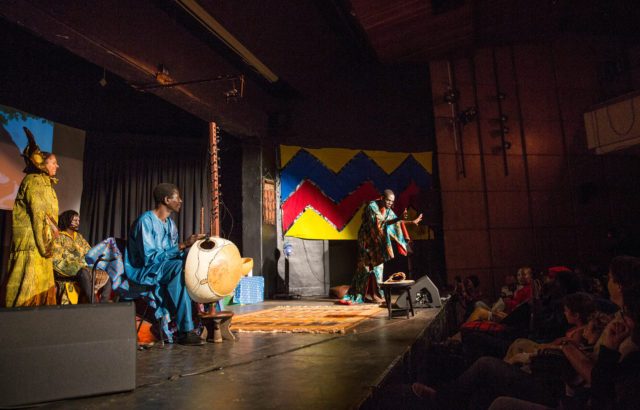 A storyteller engages the crowd at the Re-imagined Storytelling Festival