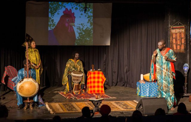 A storyteller engages the crowd at the Re-imagined Storytelling Festival