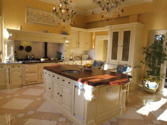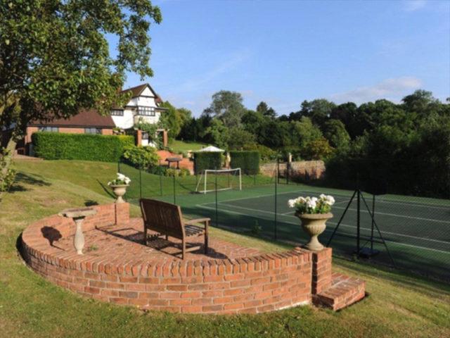 Less formal but still decadently appointed family quarters include a high-end Clive Christian designed kitchen complete a refrigerated flower storage room plus an adjoining breakfast room with four skylights in a vaulted ceiling painted as a cloudy sky while a semi-subterranean lower level contains a games room and adjoining bar-lounge plus a library/media room with integrated surround sound. Each of the five ample guest bedrooms has a private bathroom and master suite occupies its own wing with a fireplace, a huge custom-fitted dressing room and a huge bathroom with claw-footed bathtub set into a windowed bay with a view over manicured gardens. Formal gardens surround the house and give way to a swimming pool and tennis court plus a full-sized soccer pitch and a boating lake surrounded by picturesque parklands.