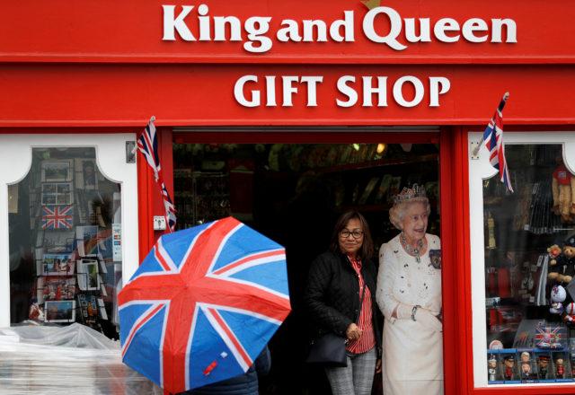 A woman gets a picture taken in a gift shop in Windsor, Britain May 8, 2019. REUTERS/Peter Nicholls