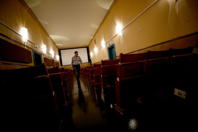 Projectionist Wolfgang makes a final inspection walk at closing time of Breitenseer Lichtspiele cinema in Vienna, Austria, October 11, 2018. REUTERS/Lisi Niesner