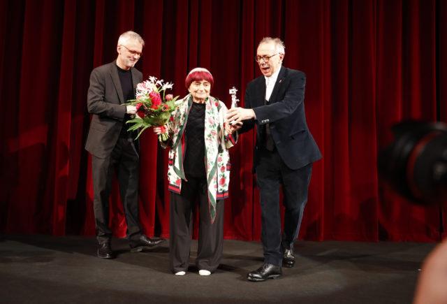 Director and screenwriter Agnes Varda accepts her Berlinale Camera award from Festival director Dieter Kosslick prior to the screening of the movie “Varda par Agnes ” (Varda by Agnes) at the 69th Berlinale International Film Festival in Berlin, Germany, February 13, 2019. REUTERS/Fabrizio Bensch