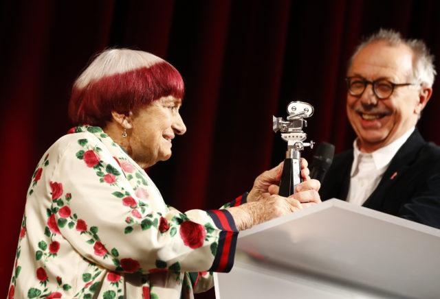 Director and screenwriter Agnes Varda accepts her Berlinale Camera award from Festival director Dieter Kosslick prior to the screening of the movie “Varda par Agnes ” (Varda by Agnes) at the 69th Berlinale International Film Festival in Berlin, Germany, February 13, 2019. REUTERS/Fabrizio Bensch