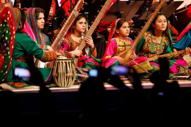 FILE PHOTO: The Afghan Woman Orchestra Zohra performs during the closing session of the World Economic Forum (WEF) annual meeting in Davos, Switzerland January 20, 2017. REUTERS/Ruben Sprich/File Photo