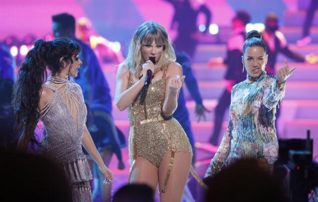 2019 American Music Awards – Show – Los Angeles, California, U.S., November 24, 2019 – Camila Cabello, Taylor Swift and Halsey perform. REUTERS/Mario Anzuoni