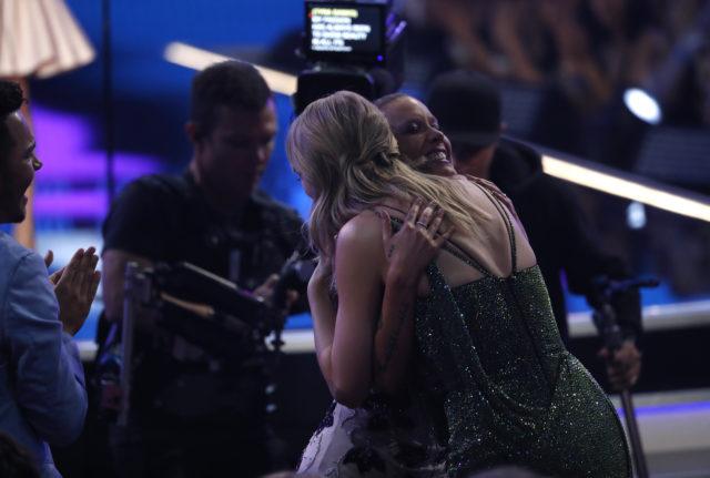 2019 American Music Awards – Show – Los Angeles, California, U.S., November 24, 2019 – Taylor Swift congratulates Halsey. REUTERS/Mario Anzuoni
