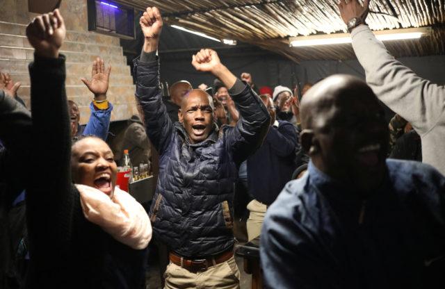 Patrons celebrate a goal by South Africa’s Bongani Zungu, as