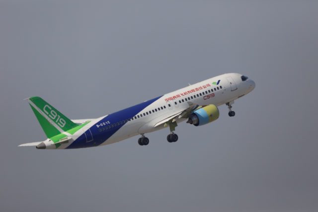 FILE PHOTO: The second prototype of China’s home-built C919 passenger jet takes off for a test flight in Shanghai, China December 17, 2017. REUTERS/Stringer