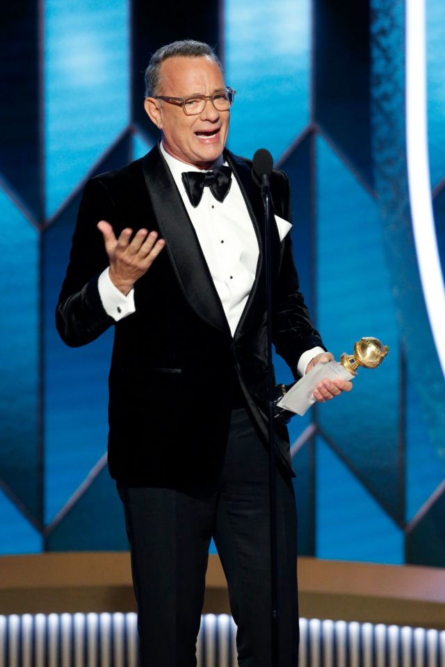 77th Golden Globe Awards – Show – Beverly Hills, California, U.S., January 5, 2020 – Tom Hanks accepts the Cecil B. DeMille Award. Paul Drinkwater/NBC Universal/Handout via REUTERS