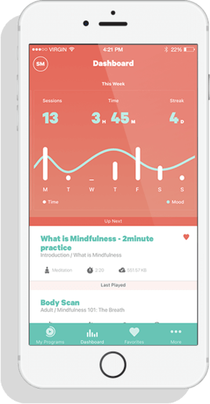 Buddhify is cleverly designed for users that are serious about their meditation rituals and have busy lifestyles. Each thoughtful “practice” focuses on different areas of life including sleeping, working and playing. It expertly weaves and guides users through customized meditations so they can reach their inner peace goals. Buddhify even has a colorful check in system so meditators can evaluate and maintain their progress.