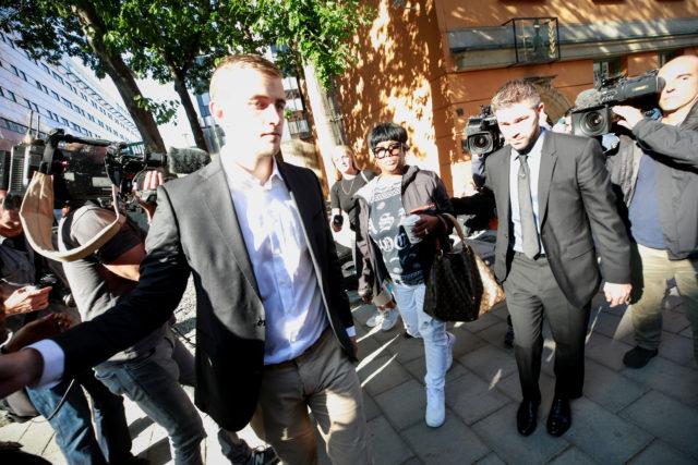 Renee Black, mother of ASAP Rocky leaves the district court after the second day of ASAP Rocky’s trial in Stockholm, Sweden August 1, 2019. TT News Agency/Fredrik Persson via REUTERS
