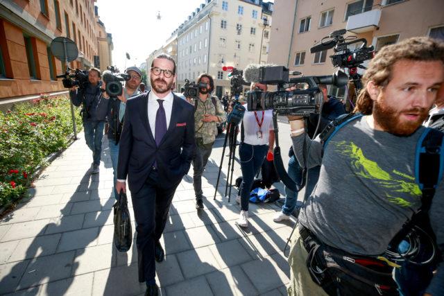 ASAP Rocky’s defence lawyer Slobodan Jovicic arrives at the district court, during the third day of ASAP Rocky’s trial, in Stockholm, Sweden August 2, 2019. TT News Agency/Fredrik Persson via REUTERS