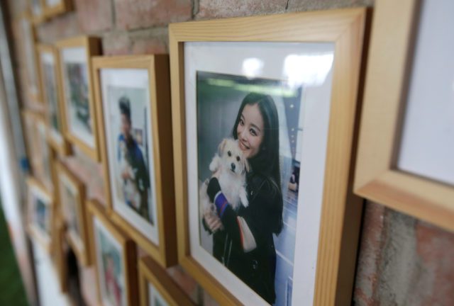 A framed picture shows Chinese actress Ni Ni holding Juice, a dog that served as the genetic source for its clone that is to continue in its footsteps as a movie star, at He Jun’s pet resort in Beijing, China November 21, 2018. Picture taken November 21, 2018. REUTERS/Jason Lee