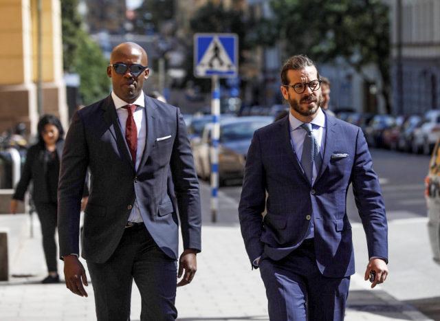 Damien Granderson and ASAP Rocky’s defence lawyer Slobodan Jovicic arrive to the district court during the second day of ASAP Rocky’s trial in Stockholm, Sweden August 1, 2019. TT News Agency/Fredrik Persson via REUTERS