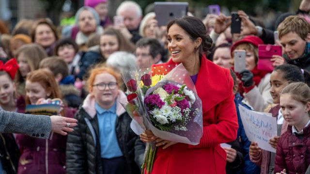 Meghan, Duchess of Sussex reacts as she visits Birkenhead, Britain January 14, 2019. Charlotte Graham/Pool via REUTERS