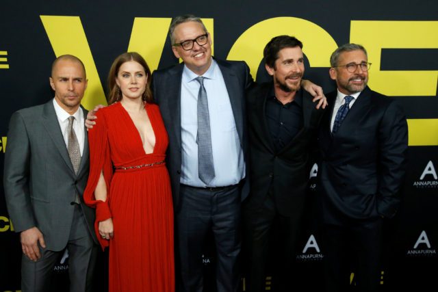 Director Adam McKay (C) and cast members (L-R) Sam Rockwell, Amy Adams, Christian Bale and Steve Carell pose at the premiere for the movie “Vice” in Beverly Hills, California, U.S., December 11, 2018. REUTERS/Mario Anzuoni