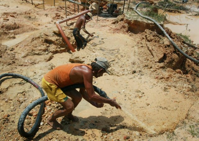 FILE PHOTO: An unlicensed Venezuelan miner uses a water jet