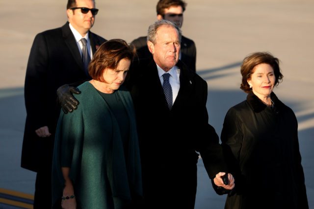 Former U.S. President George W. Bush and former first lady Laura Bush arrive at Joint Base Andrews in Maryland, U.S., following casket of former U.S. President George H.W. Bush, December 3, 2018. REUTERS/Yuri Gripas