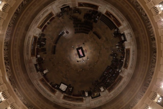 Former President George H. W. Bush lies in state in the U.S. Capitol Rotunda Monday, Dec. 3, 2018, in Washington. Morry Gash/Pool via REUTERS