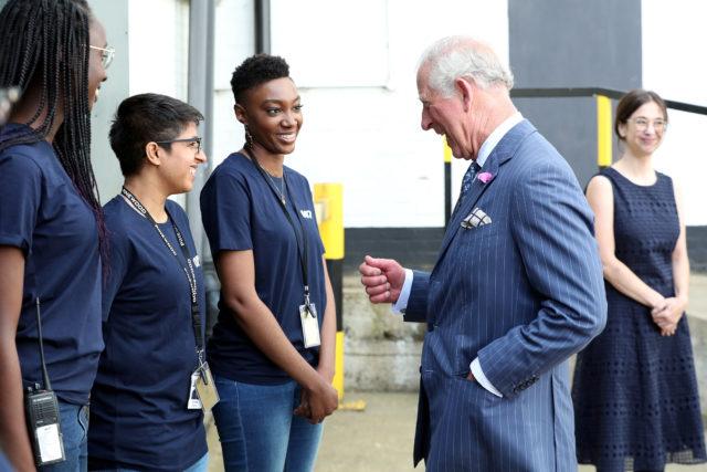 Britain’s Prince Charles speaks with BFI apprentices as he tours the set of the 25th James Bond Film at Pinewood Studios in Iver Heath, Buckinghamshire, Britain June 20, 2019. Chris Jackson/Pool via REUTERS
