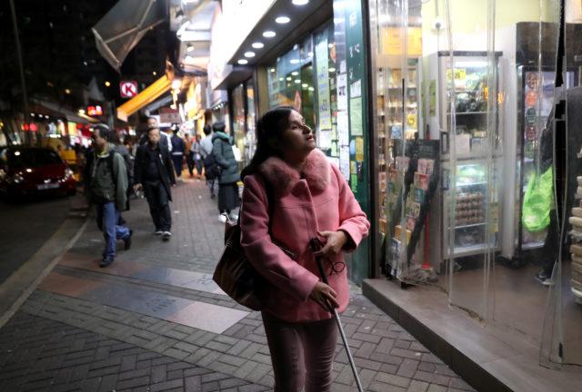 FILE PHOTO: Joy Luk, a blind lawyer, makes her way home at the end of a work day in Hong Kong, China December 5, 2019. REUTERS/Leah Millis