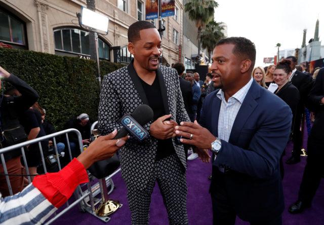 Alfonso Ribeiro speaks next to cast member Will Smith during the premiere of “Aladdin” at El Capitan theatre in Los Angeles, California, U.S. May 21, 2019. REUTERS/Mario Anzuoni