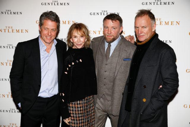 Singer Sting and his wife Trudie Styler, actor Hugh Grant and director Guy Ritchie pose as they arrive for a special screening of “The Gentlemen” in London, Britain December 3, 2019. REUTERS/Henry Nicholls
