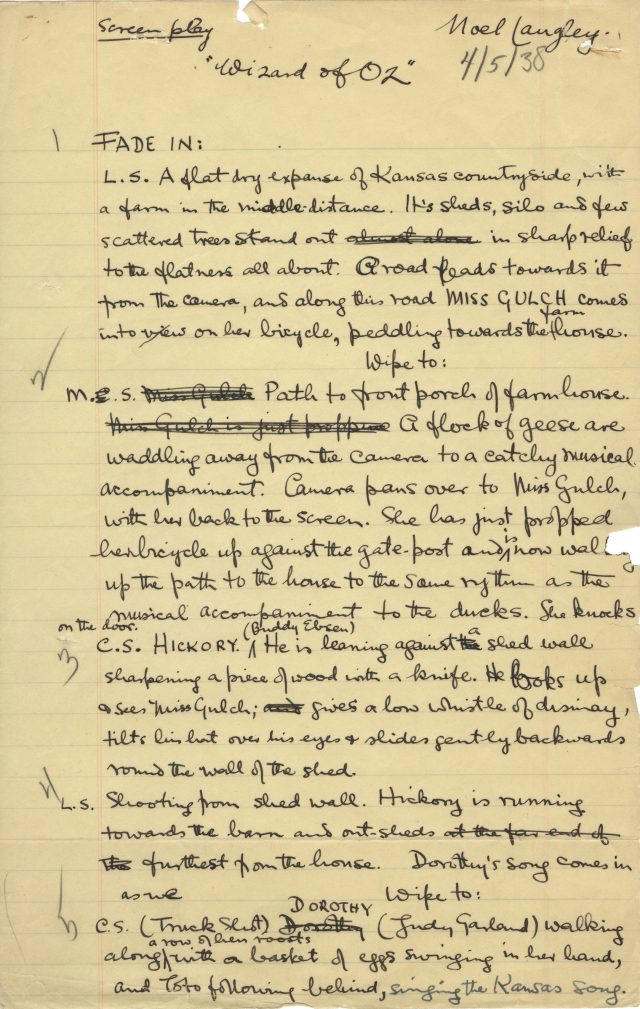 The original handwritten first draft script for the film “The Wizard of Oz” going up for auction, is seen in this image released by Profiles in History in Los Angeles, California, U.S., on November 7, 2018. Courtesy of Profiles in History/Handout via REUTERS
