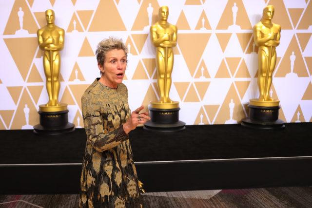 FILE PHOTO – 90th Academy Awards – Oscars Backstage – Hollywood, California, U.S., 04/03/2018 – Frances McDormand poses backstage with her Best Actress Oscar for “Three Billboards Outside Ebbing, Missouri.” REUTERS/Mike Blake