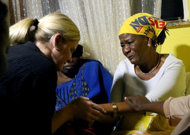 Zimbabwean Minister of Arts and Recreation Kirsty Coventry consoles musician Oliver Mtukudzi’s wife Daisy at their family home in Harare, Zimbabwe, January 23, 2019. REUTERS/Philimon Bulawayo